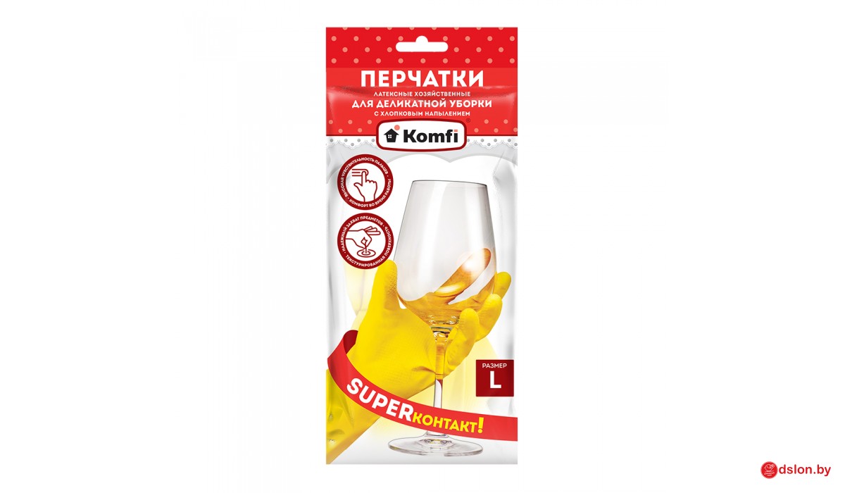 Перчатки латексные с хб напылением , желтые, « Для деликатной уборки» L Komfi 12 пар/уп