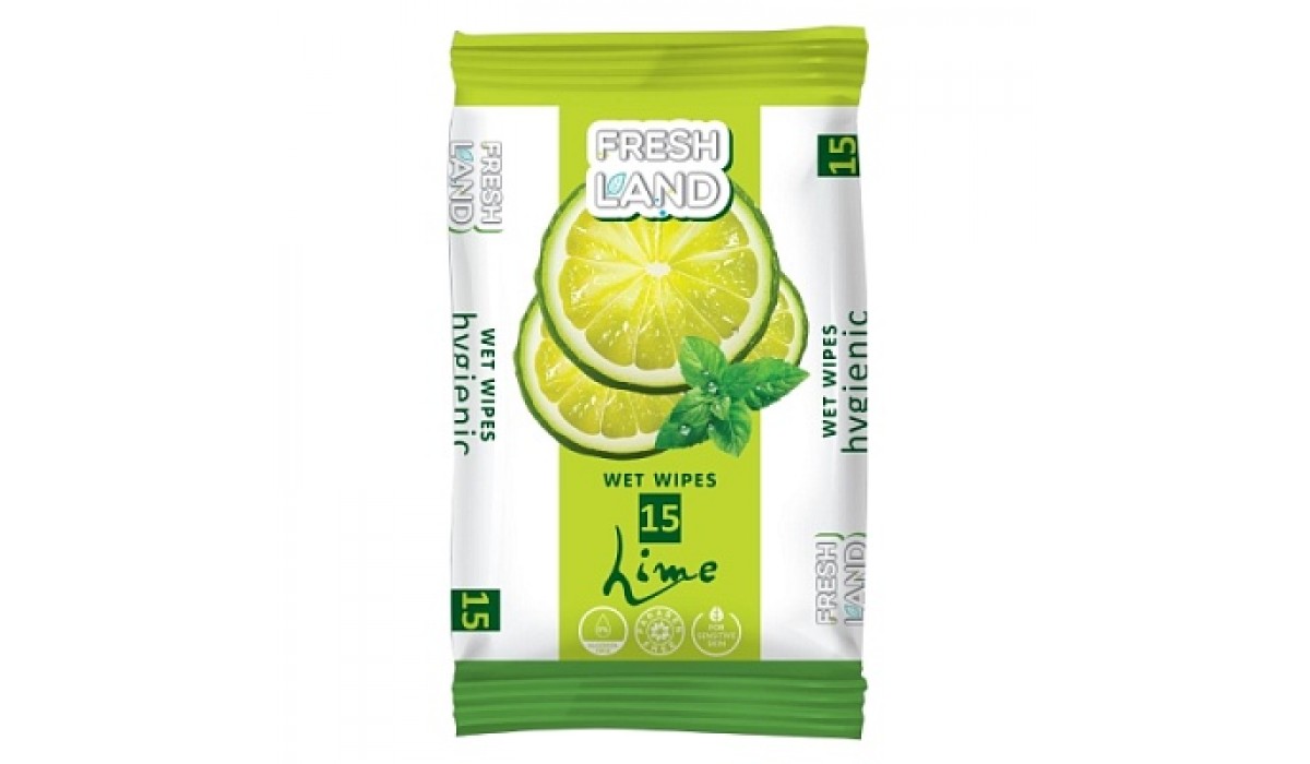 Гигиенические влажные салфетки "ФрешЛанд" 15 шт/уп (х84) (лайм)