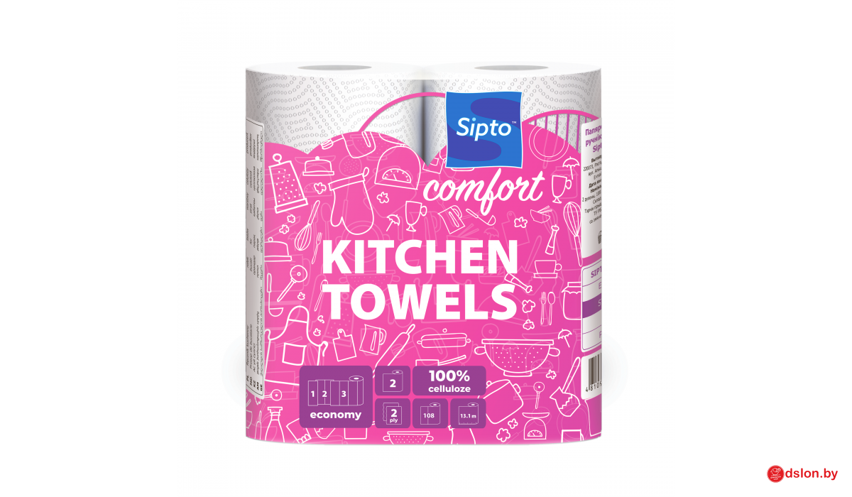 Бумажные кухонные полотенца «Sipto Comfort» белые (1*2рул.), 2-х слойные, 12 упак/меш.