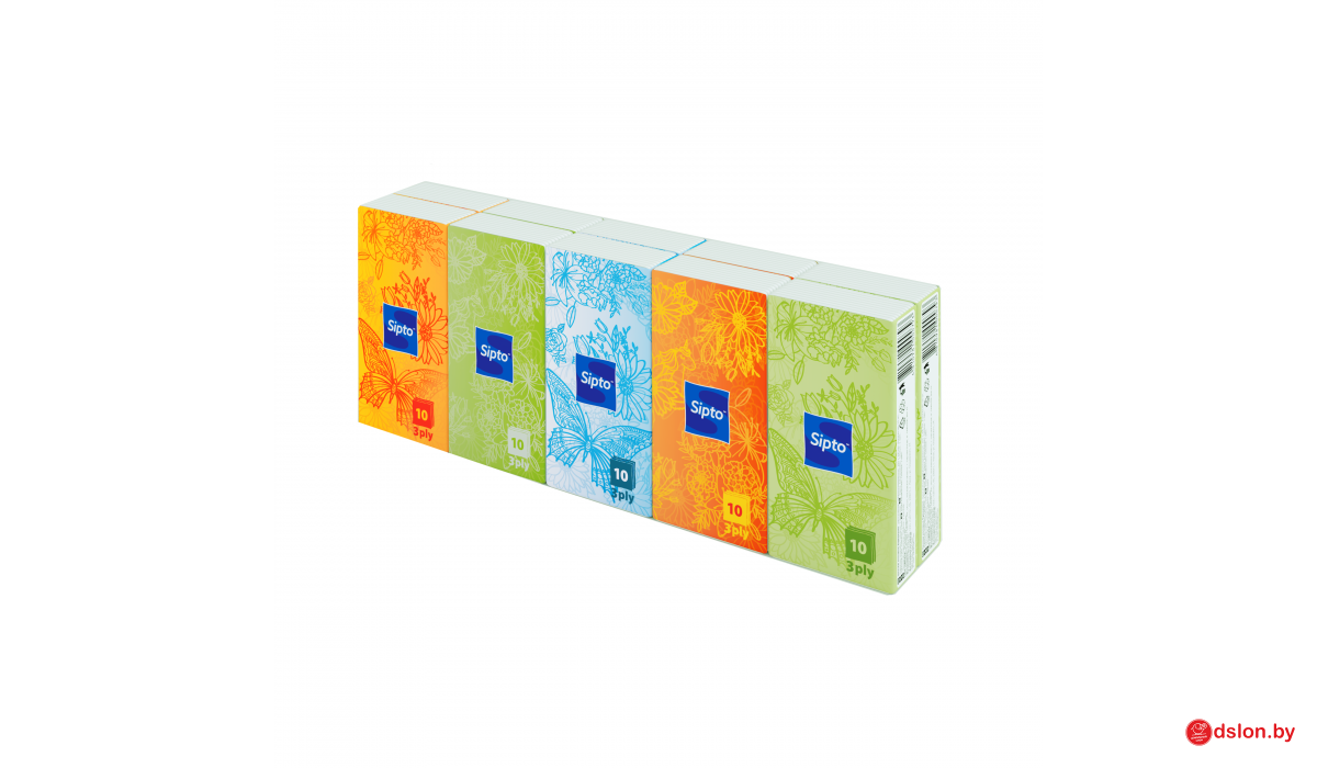 Платочки носовые бумажные "Sipto" белые с ароматом свежести 10л. 3-х сл.