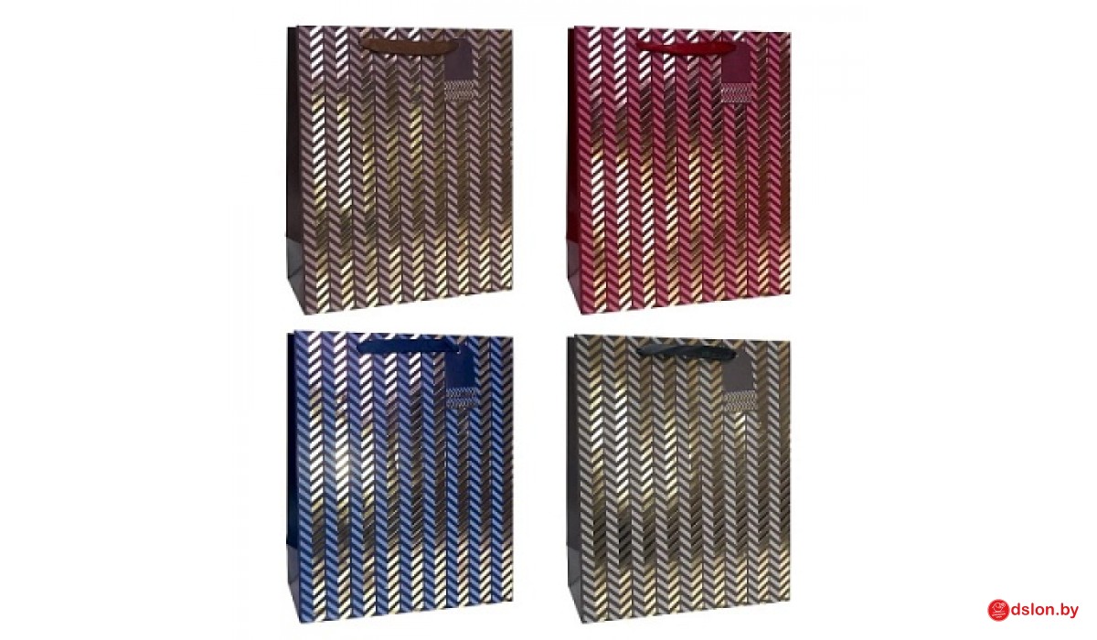 Пакет подарочный 14х20+7см Люкс с золотым тиснением (Микс 4 цвета) 20 шт/упак
